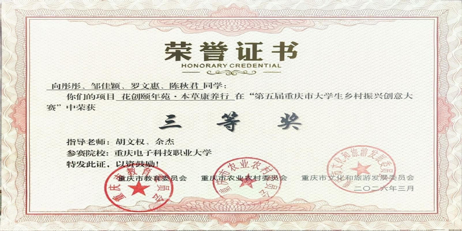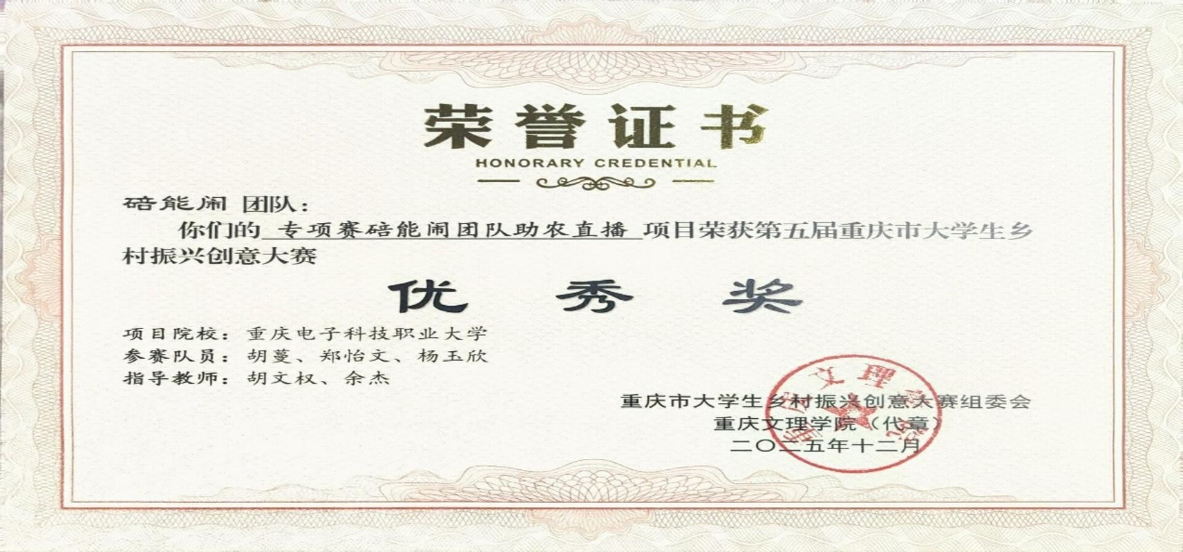 近日,第五届重庆市大学生乡村振兴创意大赛获奖结果正式揭晓。我校智慧健康学院的两支参赛队伍,在余杰教授、胡文权老师的指导下,斩获三等奖一项、优秀奖一项,充分彰显了我校服务乡村振兴的显著成效。