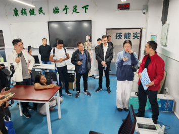 研修班学员依次走访了谢光辉重庆市机械电气首席技能大师工作室、PT&OT&ST康复训练实训室、康复辅具评估与适配实训室、假肢与矫形器设计与制作实验室(重庆市辅助器具适配专业技术人员培训基地)、足脊生物力学研究中心等专业实训场所,全程由学院院长助理兼产教办主任杨仁强同志带领并讲解。