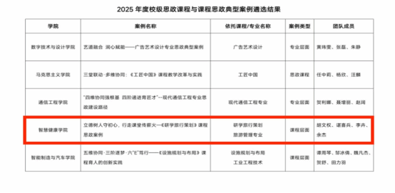 近日,重庆电子科技职业大学公布了2025年度校级课程思政典型案例评选结果,经各二级单位推荐、教务处审查、专家评审,评选出校级优秀课程思政典型案例。智慧健康学院胡文权、谌喜兵、李卉、余杰四位老师的课程思政案例成功入选。