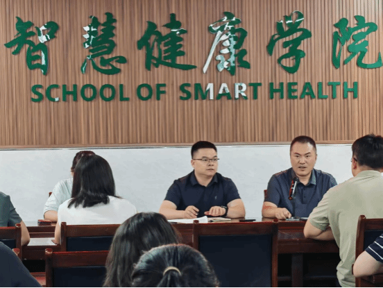 2025年7月14日下午,智慧健康学院党总支开展7月理论学习中心组及教职工政治理论学习。会议以专题学习领会习近平总书记关于教育的重要论述为主题,深刻领会习近平总书记关于教育的重要论述的核心思想、精神实质和精髓要义,重点围绕“建设教育强国,重电何为”开展交流研讨。学院党总支书记谌喜兵主持会议,学院理论学习中心组及全体教职工参加,谢光辉副校长出席指导。