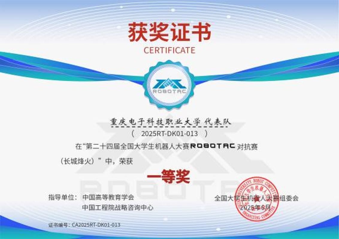 全国大学生机器人大赛组委会授予“十年铸剑 匠心育人”。
